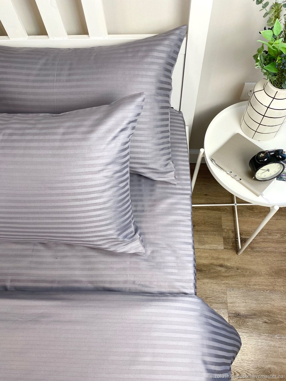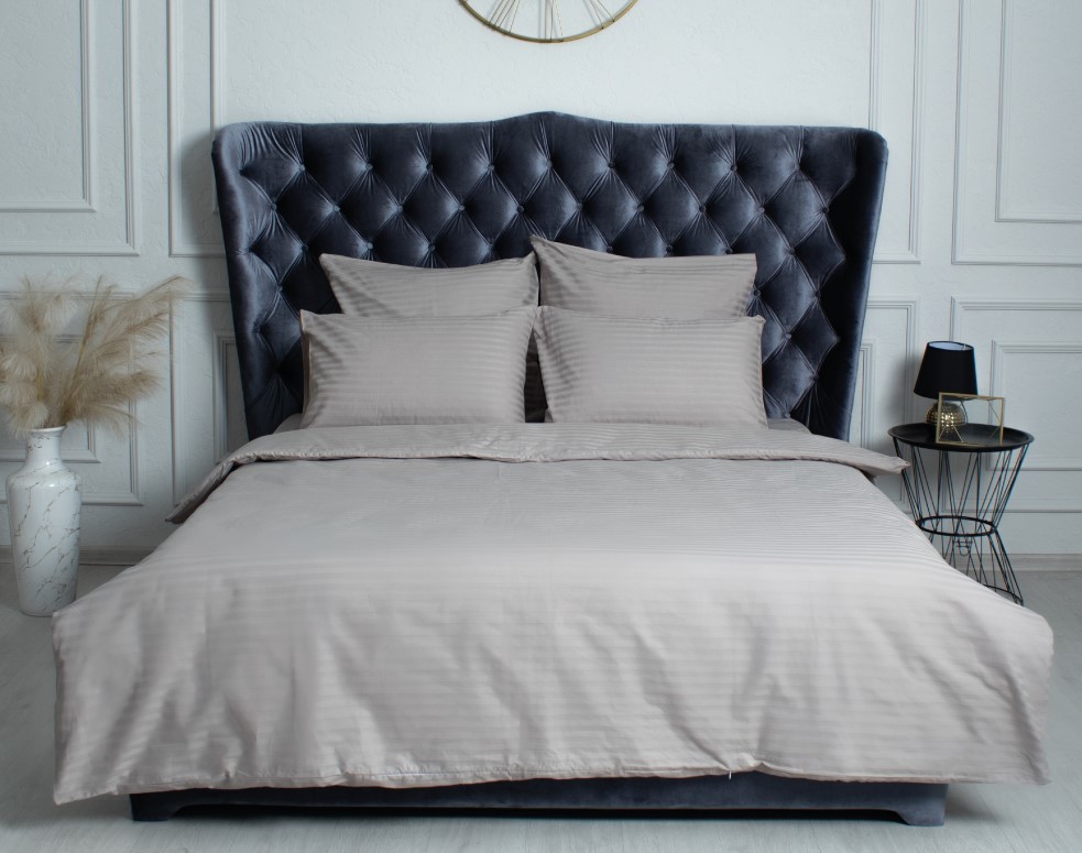 Страйп-сатин – ткань премиум-класса, которая привлекает внимание красивым отливом. Изготовлена из хлопка, для придания блеска иногда добавляют перламутровые нити. Полотно отличается высокой изностойкостью и приятно на ощупь. Страйп-сатин выдерживает множественные циклы стирки, не выцветает и не деформируется.